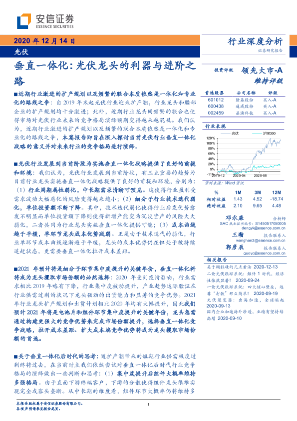 【安信证券】【20201214】光伏垂直一体化:光伏龙头的利器与进阶之路-19页