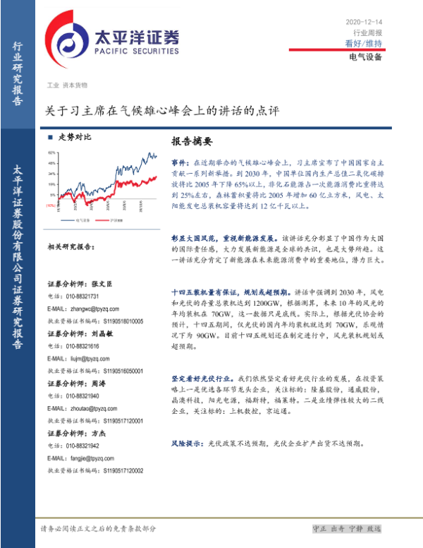 【太平洋证券】【20201214】20201214-太平洋-电气设备行业周报:关于习主席在气候雄心峰会上的讲话的点评-4页