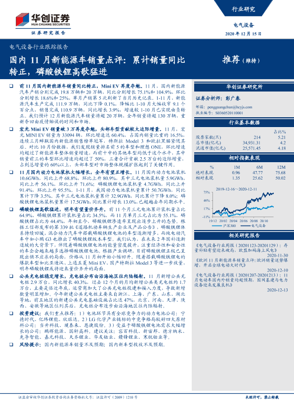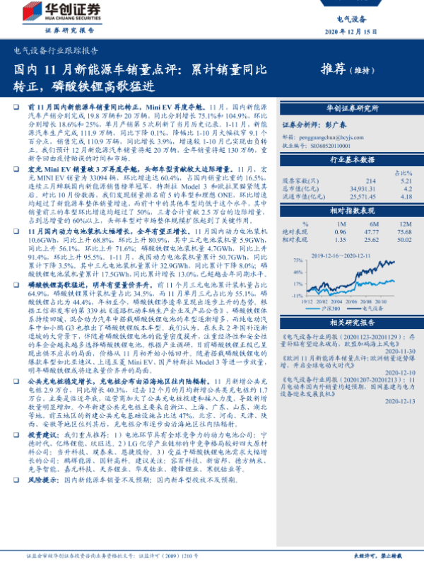【华创证券】【20201215】国内11月新能源车销量点评:累计销量同比转正,磷酸铁锂高歌猛进-10页