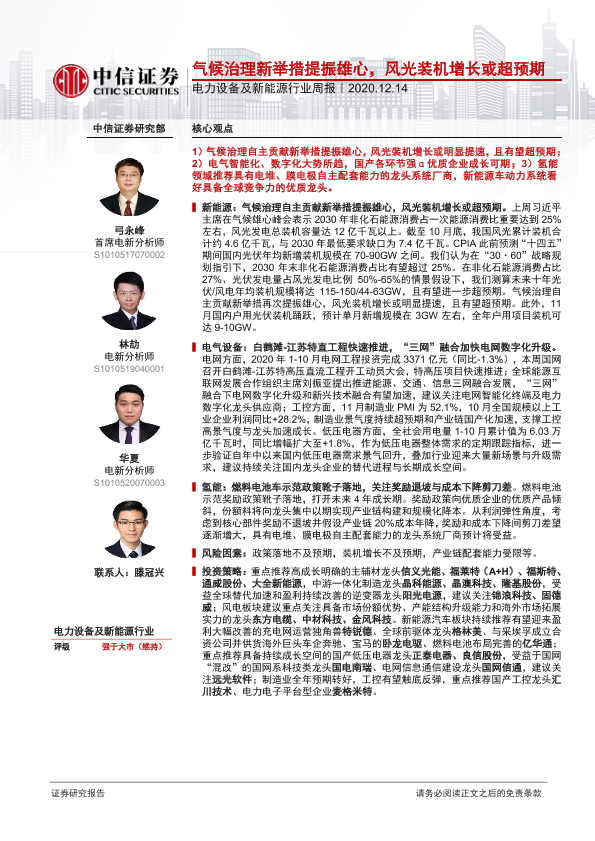【中信证券】【20201214】电力设备及新能源行业周报:气候治理新举措提振雄心,风光装机增长或超预期-14页