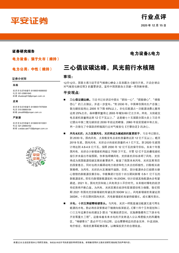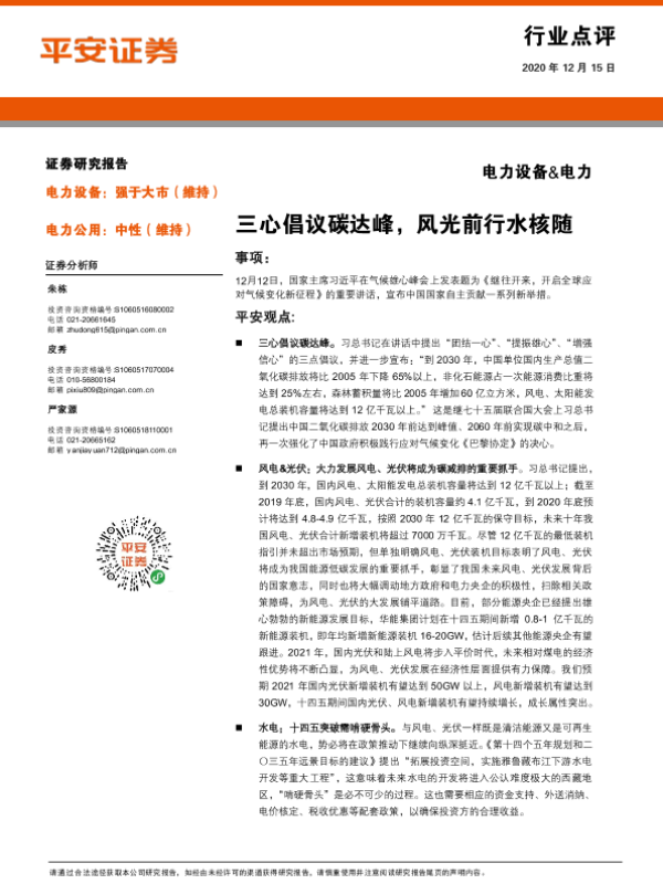 【平安证券】【20201215】电力设备&电力行业点评:三心倡议碳达峰,风光前行水核随-3页