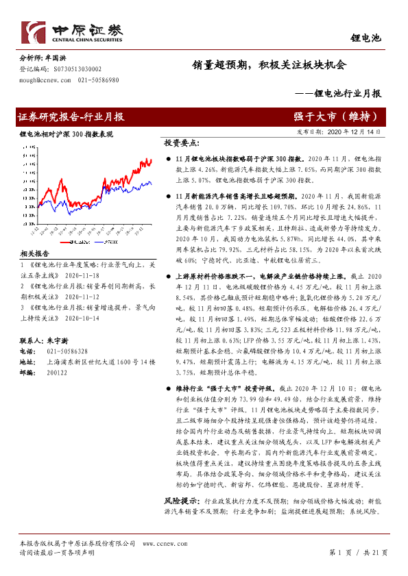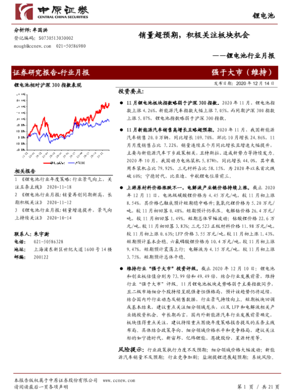 【中原证券】【20201214】锂电池行业月报:销量超预期,积极关注板块机会-21页