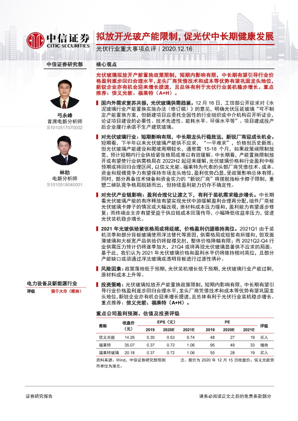 【中信证券】【20201216】光伏行业重大事项点评:拟放开光玻产能限制,促光伏中长期健康发展-2页