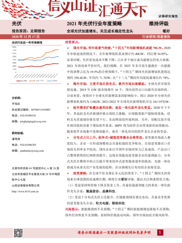 【山西证券】【20201217】2021年光伏行业年度策略:全球光伏加速增长,关注成长确定性龙头-36页