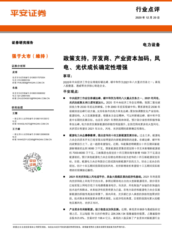 【平安证券】【20201220】电力设备:政策支持,开发商、产业资本加码,风电、光伏成长确定性增强-3页