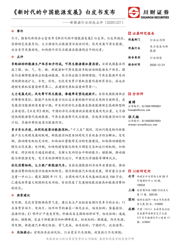 【川财证券】【20201221】20201221-川财证券-新能源行业动态点评:《新时代的中国能源发展》白皮书发布-2页