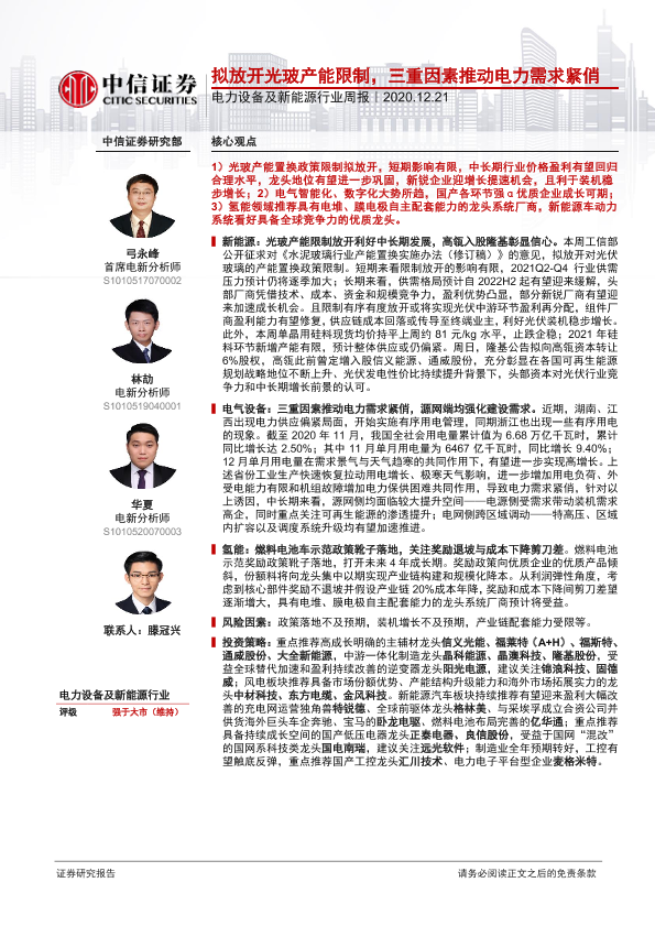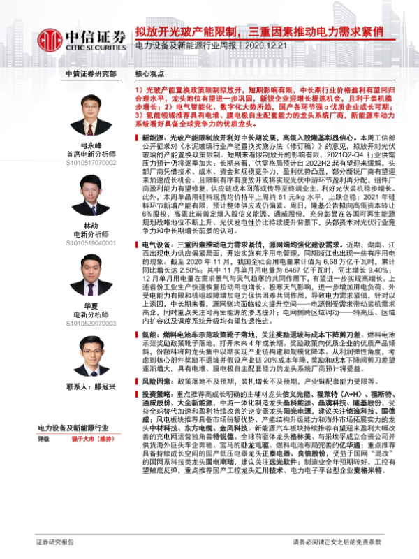 【中信证券】【20201221】电力设备及新能源行业周报:拟放开光玻产能限制,三重因素推动电力需求紧俏-11页