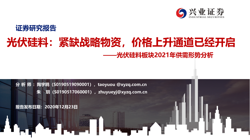 【兴业证券】【20201223】光伏硅料:紧缺战略物资,价格上升通道已经开启-19页