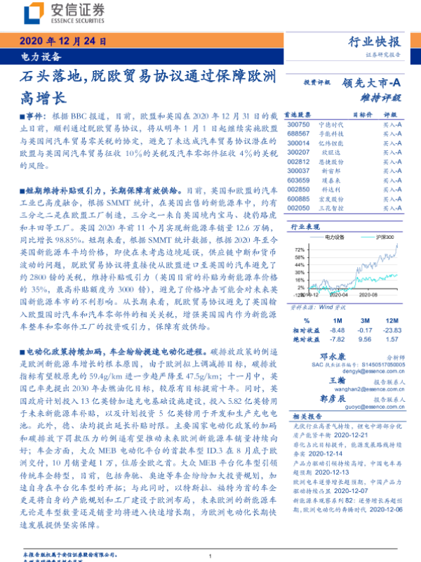 【安信证券】【20201224】电力设备:石头落地,脱欧贸易协议通过保障欧洲高增长-4页