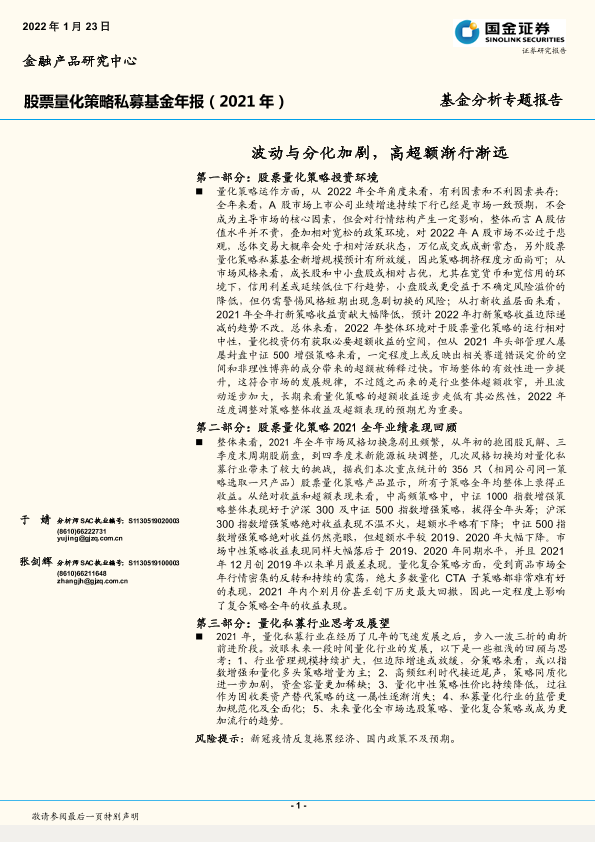 【国金证券】【20220123】股票量化策略私募基金年报(2021 年):波动与分化加剧,高超额渐行渐远-22页