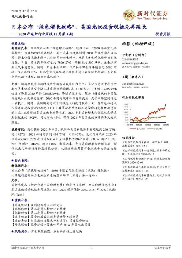 【新时代证券】【20201227】2020年电新行业周报12月第4期:日本公布“绿色增长战略”,美国光伏投资税抵免再延长-15页