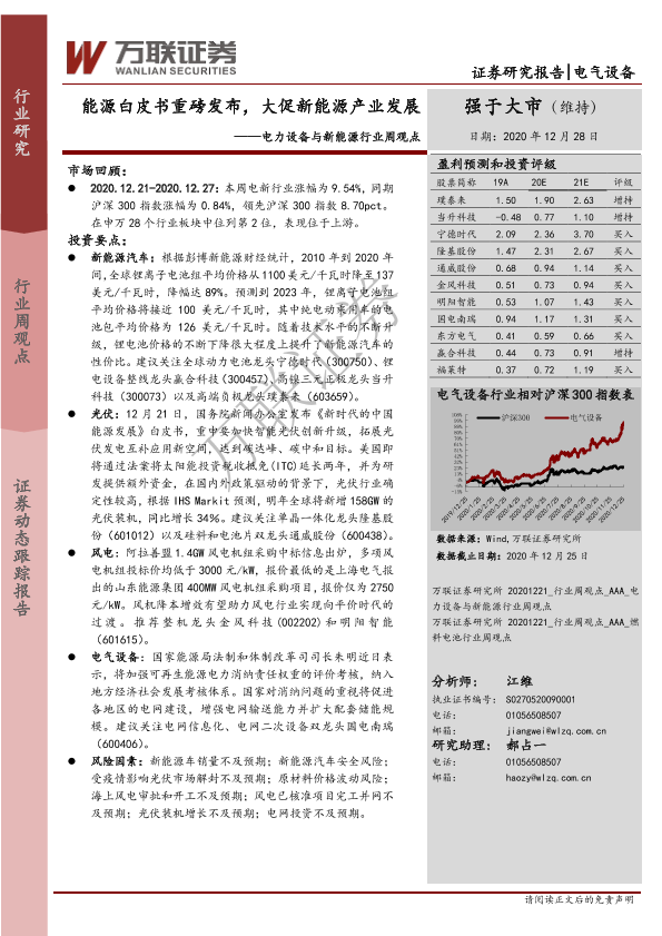 【万联证券】【20201228】电力设备与新能源行业周观点:能源白皮书重磅发布,大促新能源产业发展-19页