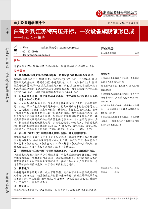 【浙商证券】【20210101】电力设备新能源行业点评报告:白鹤滩到江苏特高压开标,一次设备旗舰雏形已成-5页