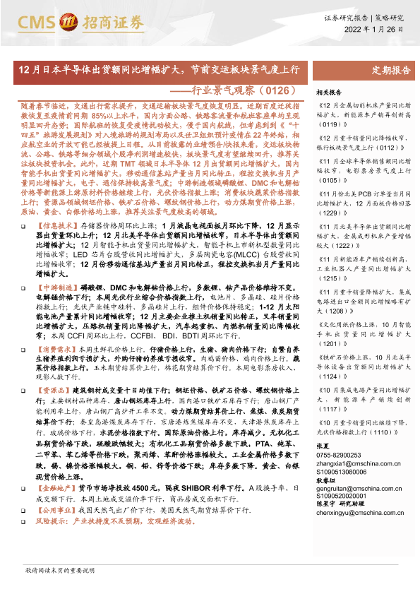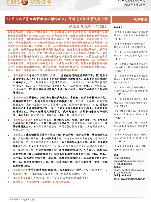 【海通证券】【20220126】行业景气观察:12月日本半导体出货额同比增幅扩大,节前交运板块景气度上行-38页