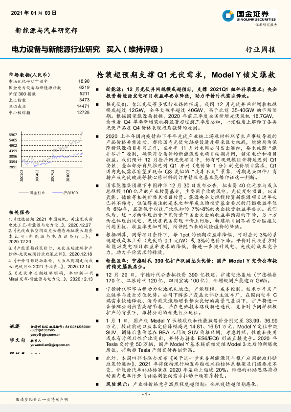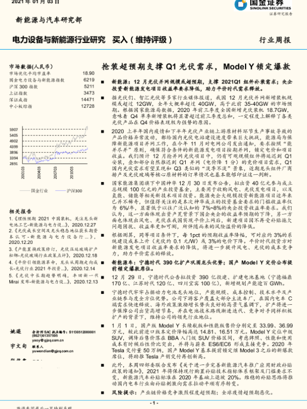 【国金证券】【20210103】电力设备与新能源行业研究:抢装超预期支撑Q1光伏需求,Model Y锁定爆款-4页