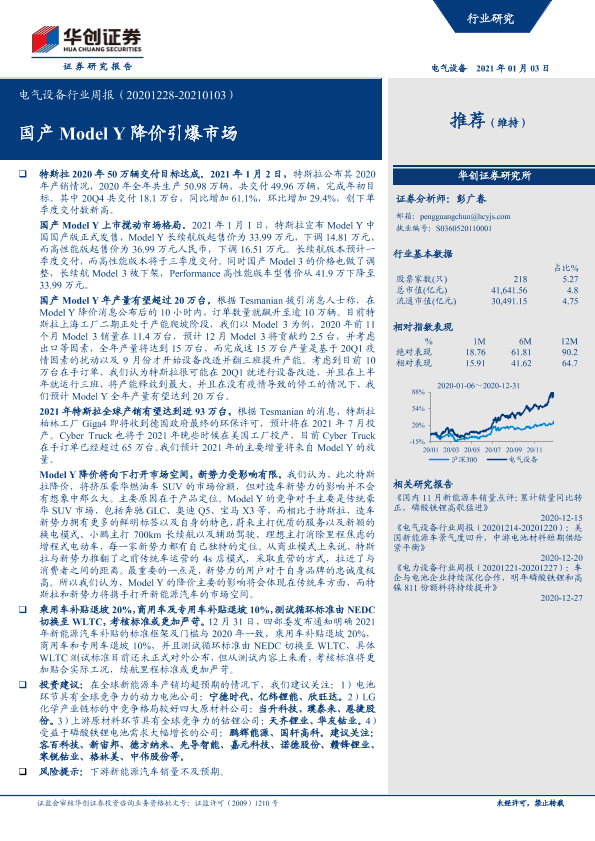 【华创证券】【20210103】电气设备行业周报:国产Model Y降价引爆市场-16页