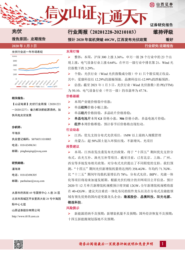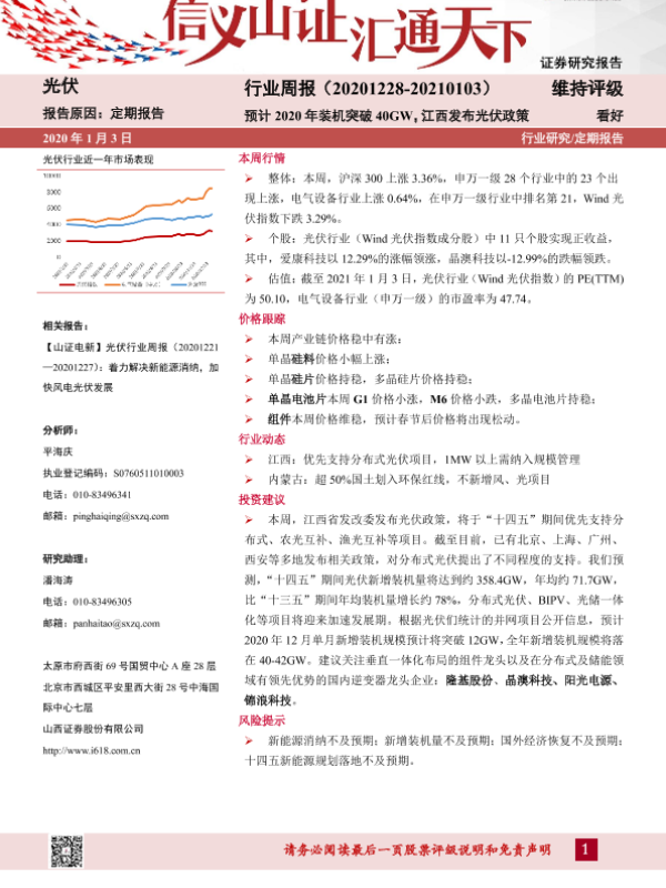 【山西证券】【20210103】20210103-山西证券-光伏行业周报:预计2020年装机突破40GW,江西发布光伏政策-10页