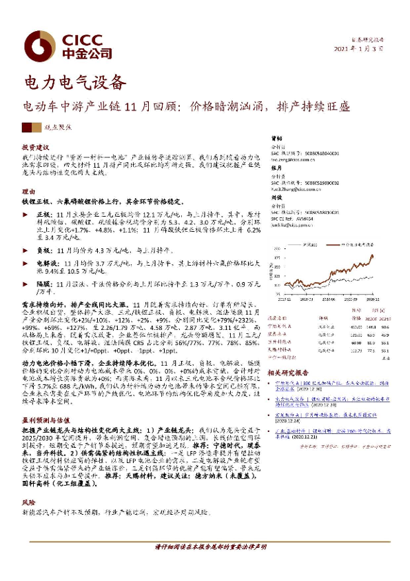 【中金公司】【20210103】电力电气设备行业:电动车中游产业链11月回顾:价格暗潮汹涌,排产持续旺盛-21页