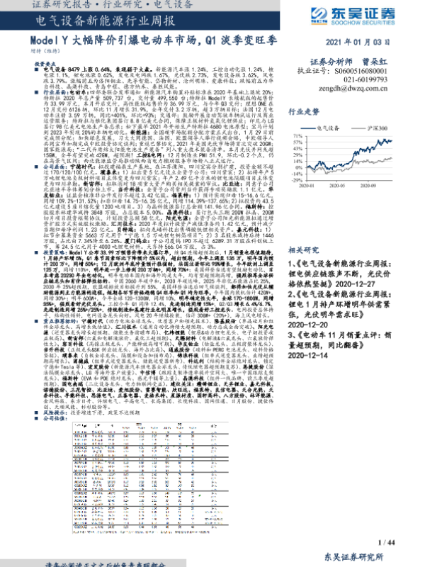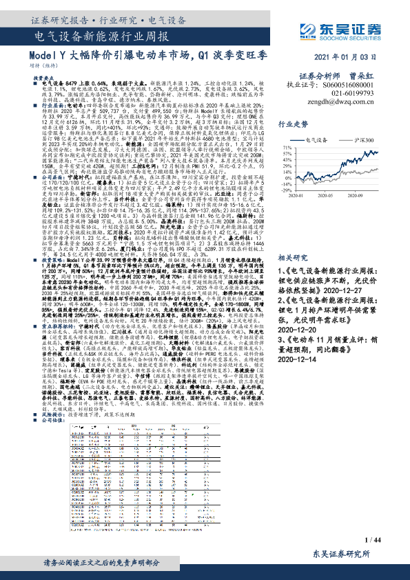 【东吴证券】【20210103】电气设备新能源行业周报:Model Y大幅降价引爆电动车市场,Q1淡季变旺季-44页