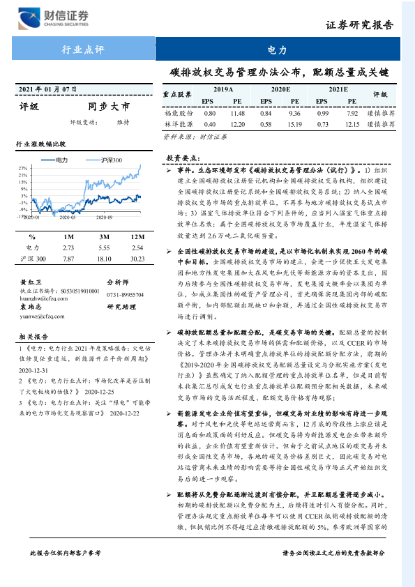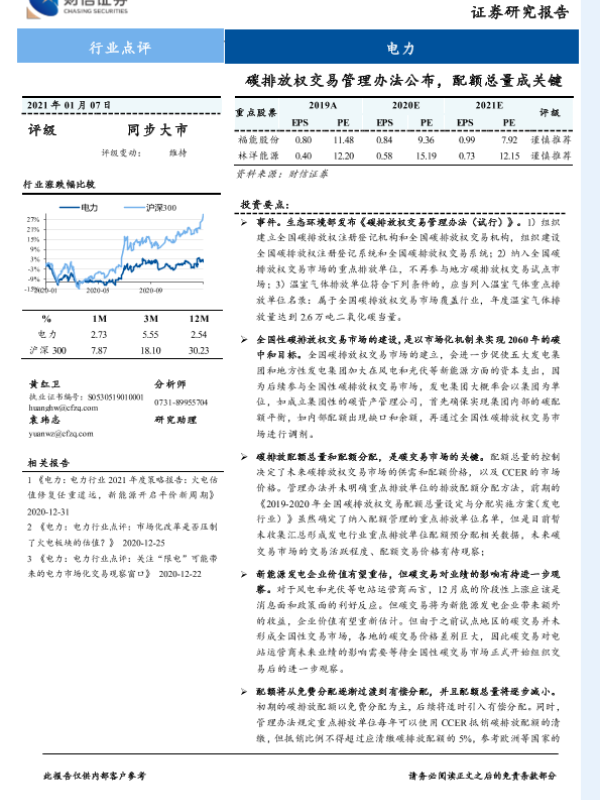 【财信证券】【20210107】电力行业点评:碳排放权交易管理办法公布,配额总量成关键-3页