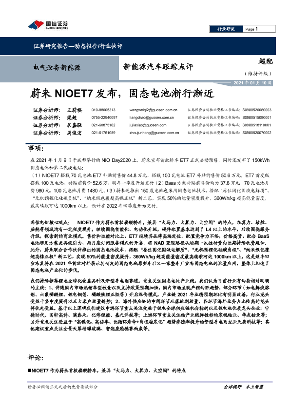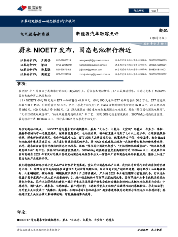 【国信证券】【20210110】20210110-国信证券-新能源汽车跟踪点评:蔚来NIOET7发布,固态电池渐行渐近-8页