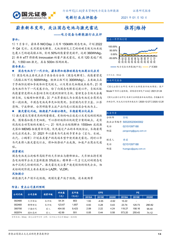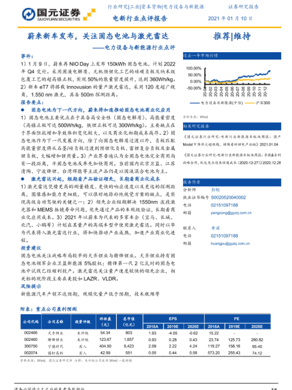 【国元证券】【20210110】电力设备与新能源行业点评:蔚来新车发布,关注固态电池与激光雷达-4页