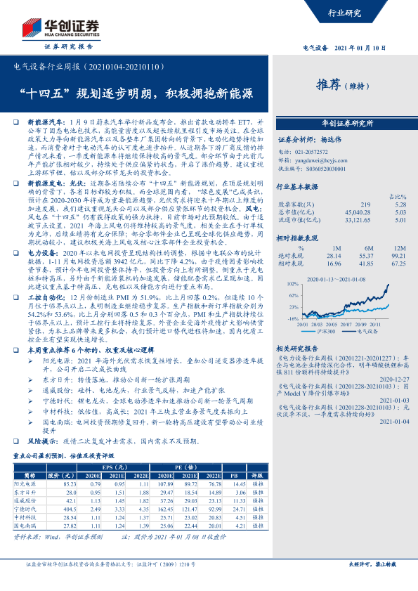 【华创证券】【20210110】电气设备行业周报:“十四五”规划逐步明朗,积极拥抱新能源-22页