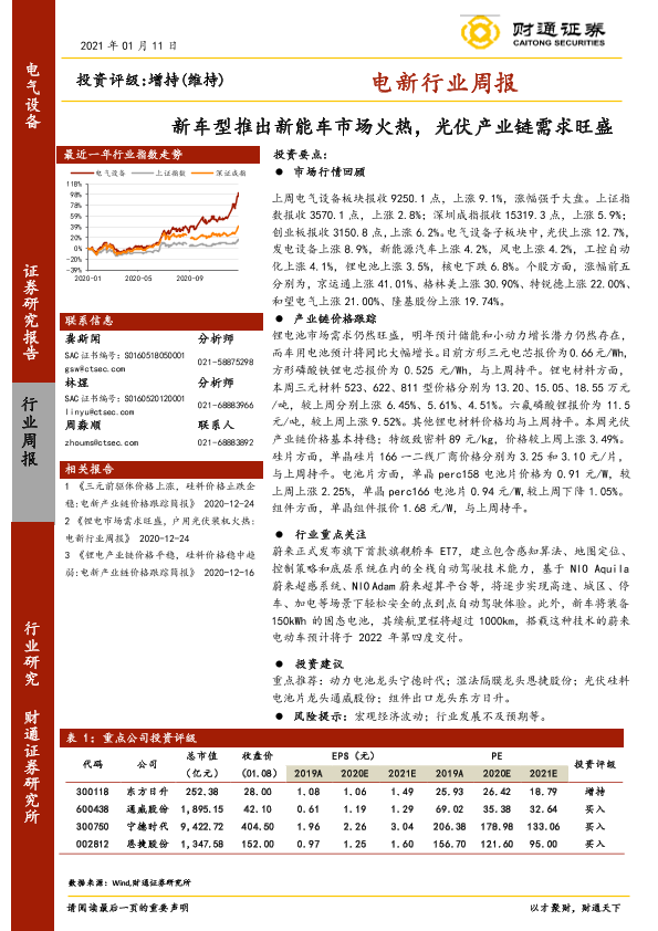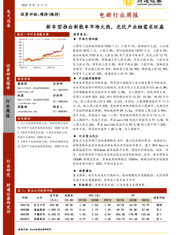 【财通证券】【20210111】电新行业周报:新车型推出新能车市场火热,光伏产业链需求旺盛-13页