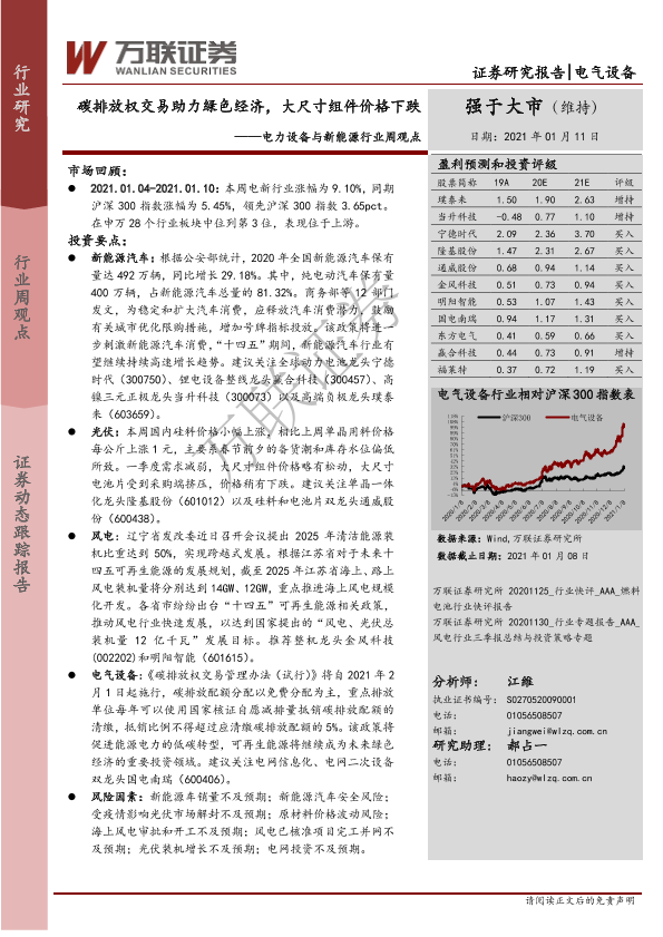 【万联证券】【20210111】电力设备与新能源行业周观点:碳排放权交易助力绿色经济,大尺寸组件价格下跌-14页