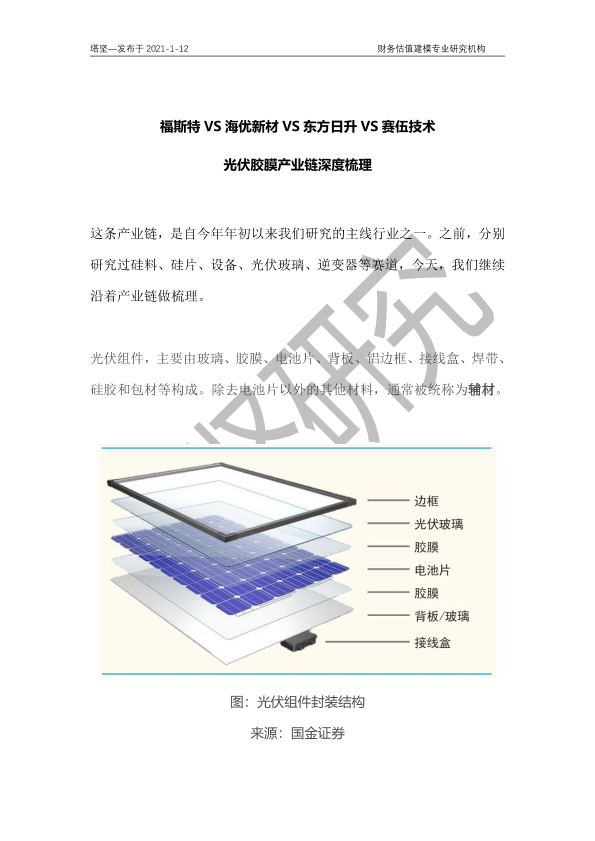 【并购优塾】【20210112】福斯特VS海优新材VS东方日升VS赛伍技术:光伏胶膜产业链深度梳理-24页
