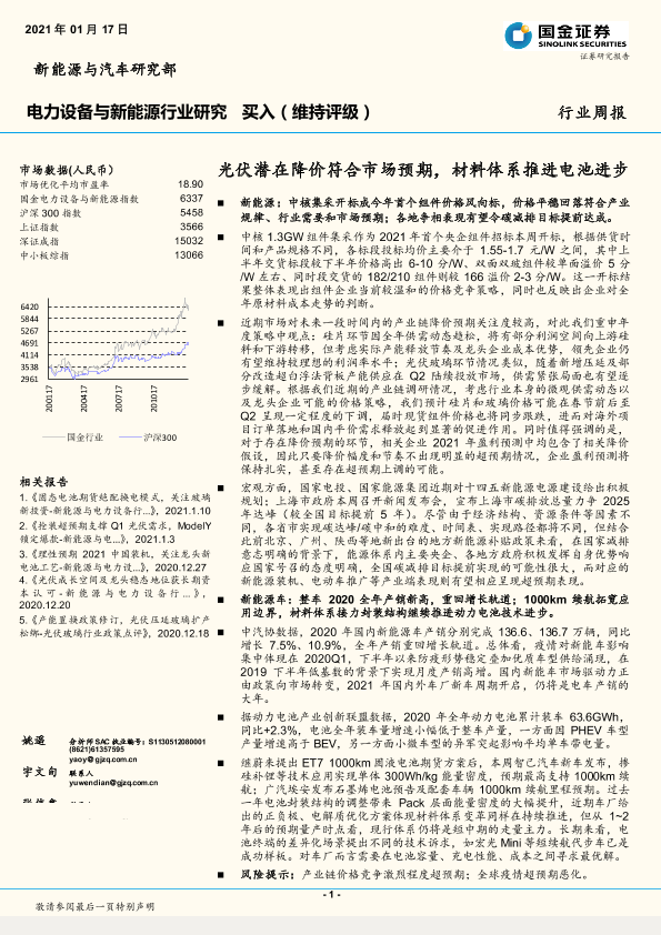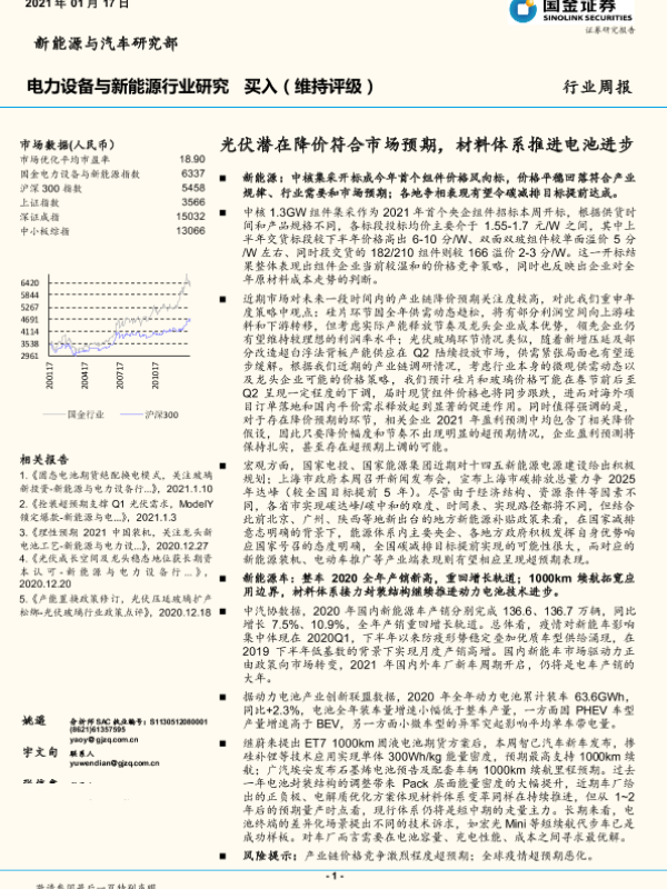 【国金证券】【20210117】电力设备与新能源行业研究:光伏潜在降价符合市场预期,材料体系推进电池进步-5页