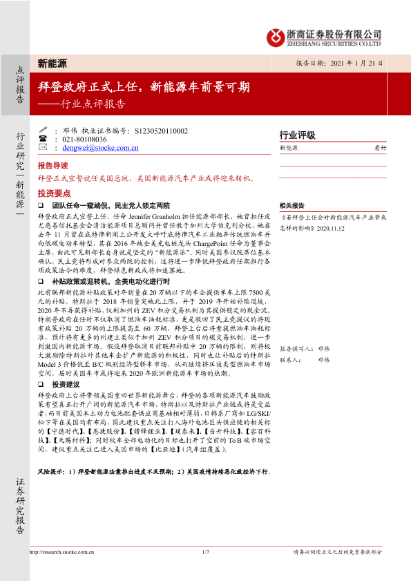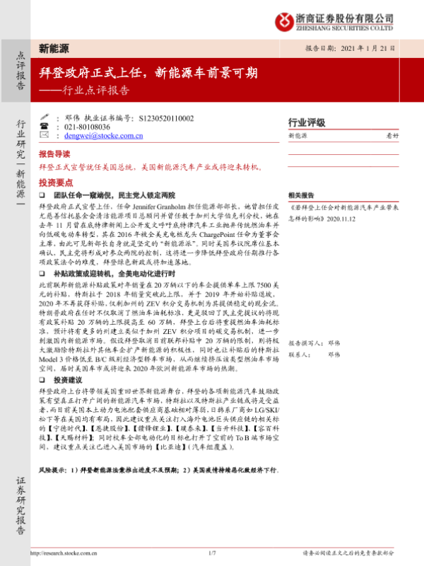 【浙商证券】【20210121】20210121-浙商证券-新能源行业点评报告:拜登政府正式上任,新能源车前景可期-7页