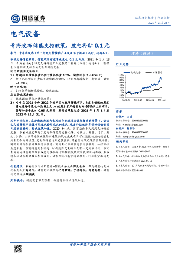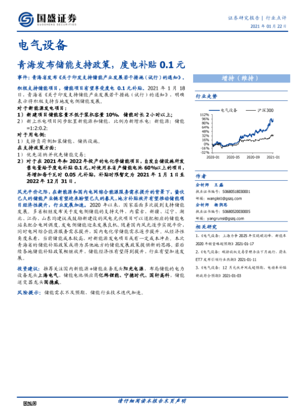 【国盛证券】【20210122】电气设备行业:青海发布储能支持政策,度电补贴0.1元-2页