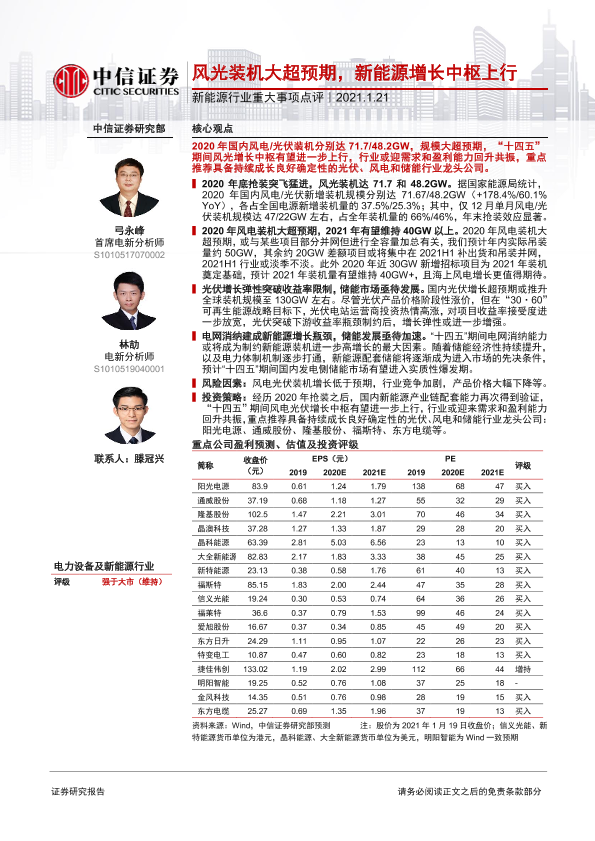 【中信证券】【20210121】20210121-中信证券-新能源行业重大事项点评:风光装机大超预期,新能源增长中枢上行-7页