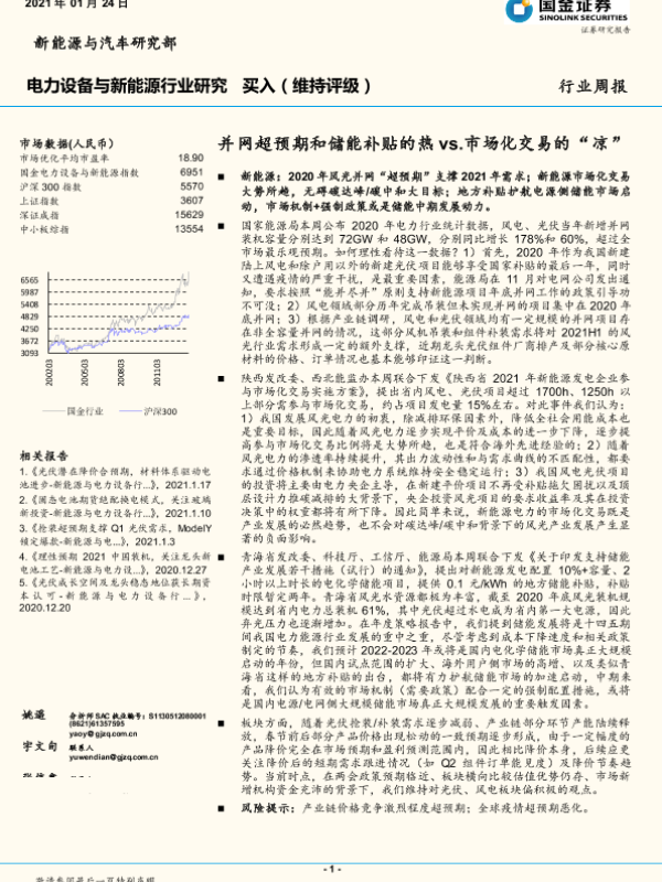 【国金证券】【20210124】电力设备与新能源行业研究:并网超预期和储能补贴的热vs.市场化交易的“凉”-4页