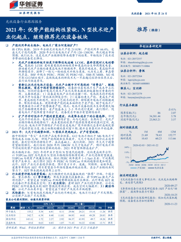 【华创证券】【20210124】光伏设备行业跟踪报告2021年:优势产能结构性紧缺,N型技术迎产业化起点,继续推荐光伏设备板块-4页