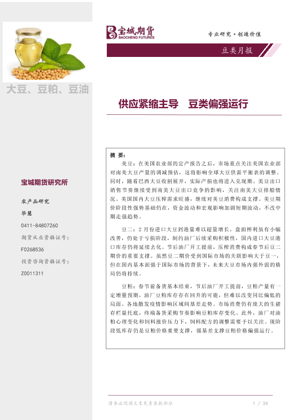 【宝城期货】【20220127】豆类月报:供应紧缩主导,豆类偏强运行-22页