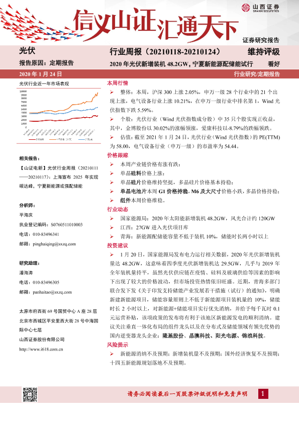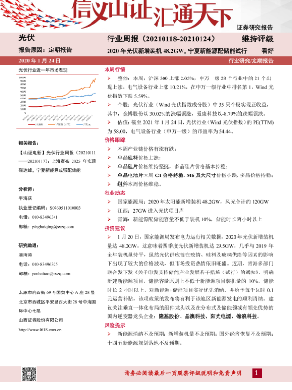 【山西证券】【20210124】20210124-山西证券-光伏行业周报:2020年光伏新增装机48.2GW,宁夏新能源配储能试行-10页