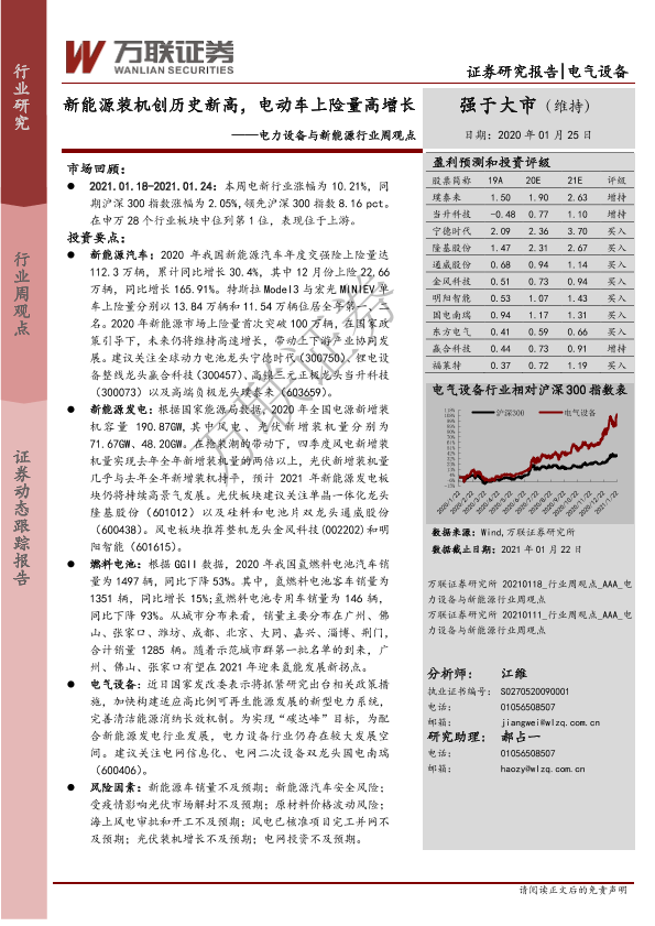 【万联证券】【20210125】电力设备与新能源行业周观点:新能源装机创历史新高,电动车上险量高增长-15页