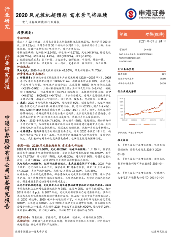 【申港证券】【20210124】20210124-申港证券-电气设备及新能源行业周报:2020风光装机超预期 需求景气将延续-37页