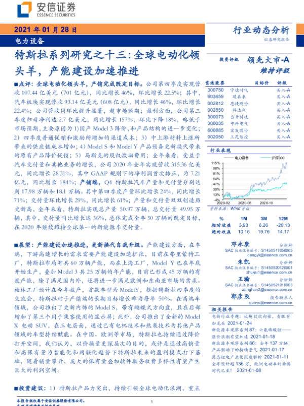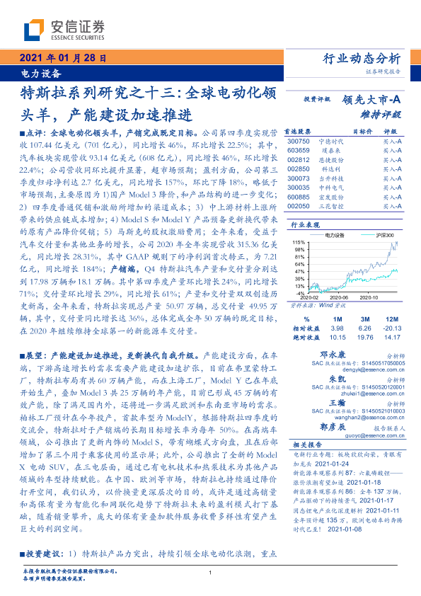 【安信证券】【20210128】特斯拉系列研究之十三:全球电动化领头羊,产能建设加速推进-19页