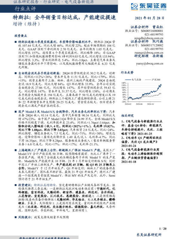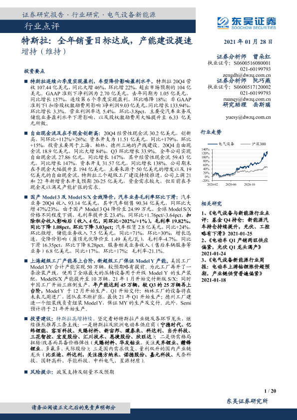 【东吴证券】【20210128】特斯拉:全年销量目标达成,产能建设提速-20页