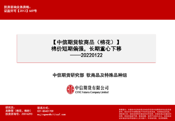 【中信期货】【20220122】软商品(棉花):棉价短期偏强,长期重心下移-26页