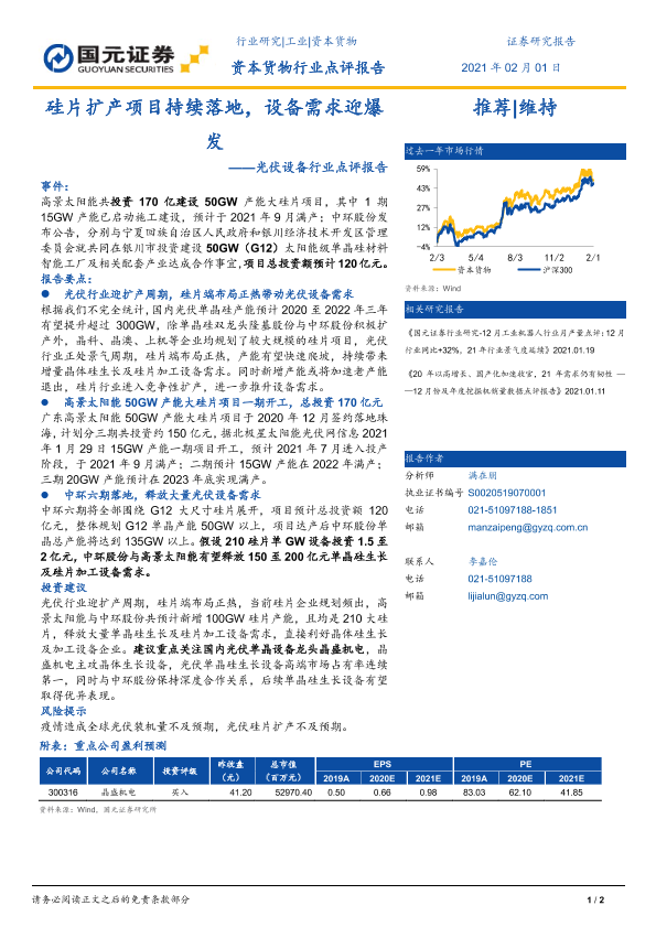 【国元证券】【20210201】光伏设备行业点评报告:硅片扩产项目持续落地,设备需求迎爆发-2页