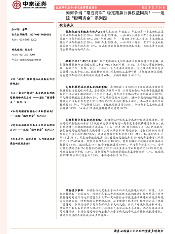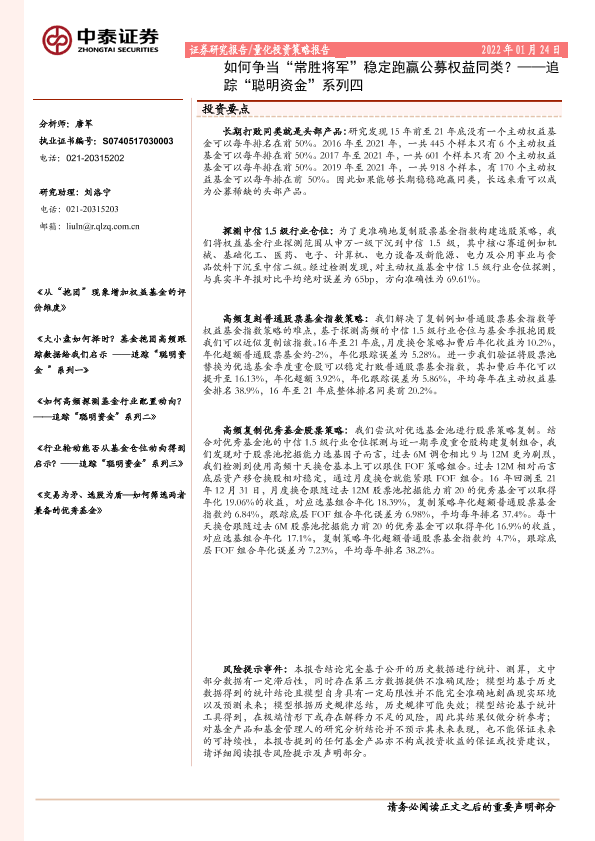 【中泰证券】【20220124】追踪“聪明资金”系列四:如何争当“常胜将军”稳定跑赢公募权益同类?-36页