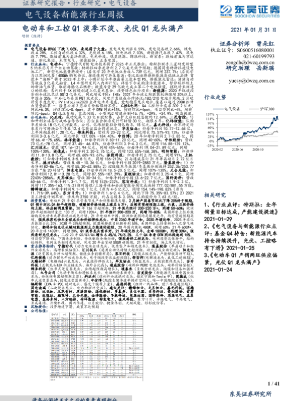 【东吴证券】【20210131】电气设备新能源行业周报:电动车和工控Q1淡季不淡、光伏Q1龙头满产-41页