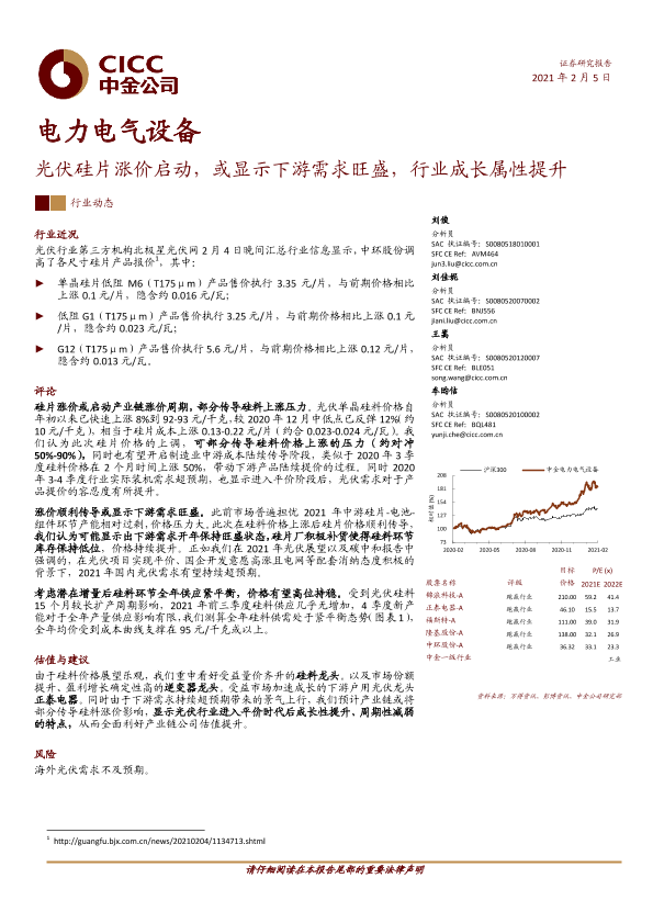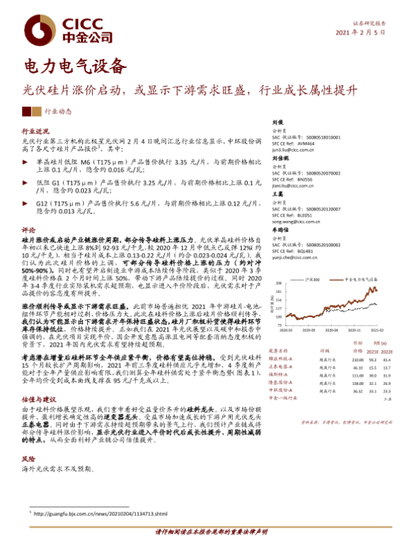 【中金公司】【20210205】电力电气设备:光伏硅片涨价启动,或显示下游需求旺盛,行业成长属性提升-7页