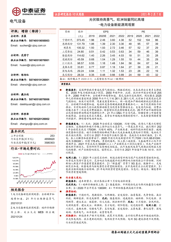 【中泰证券】【20210207】电力设备新能源周观察:光伏维持高景气,欧洲销量同比高增-16页