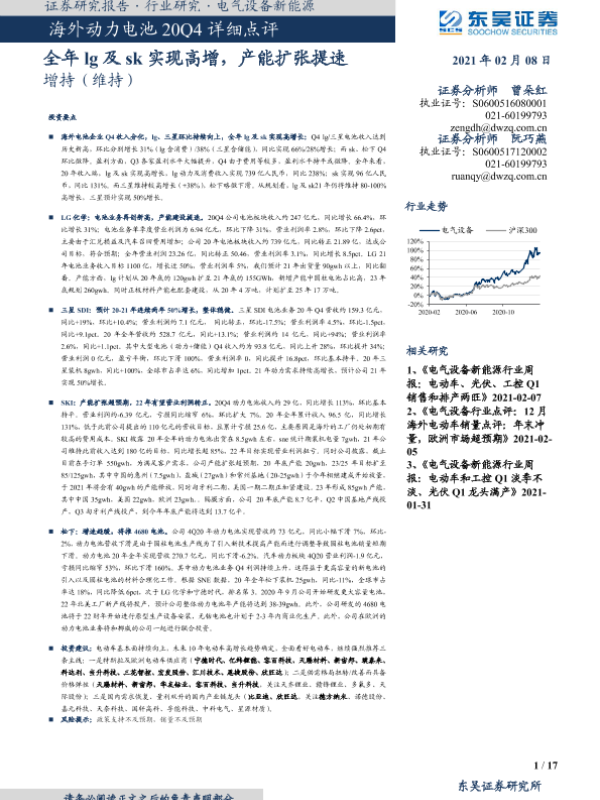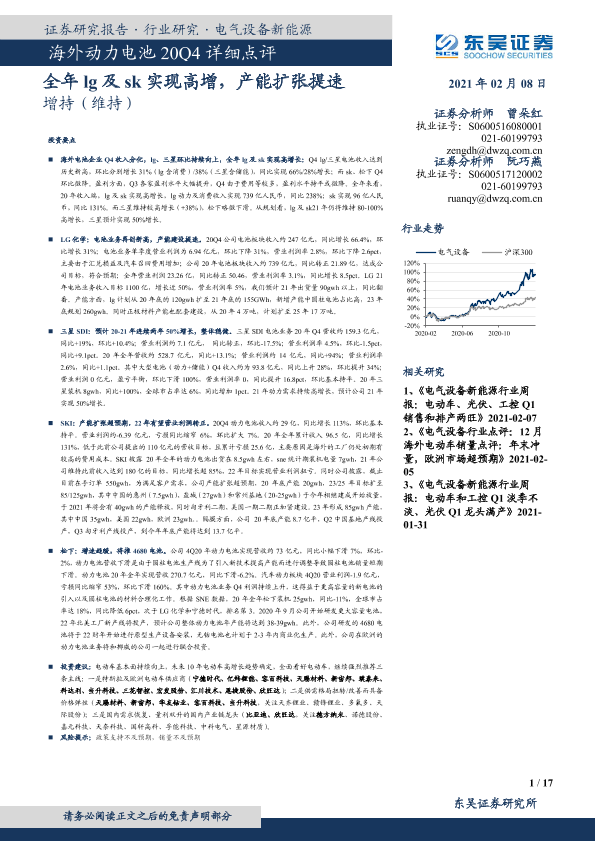 【东吴证券】【20210208】海外动力电池20Q4详细点评-全年lg及sk实现高增,产能扩张提速-17页