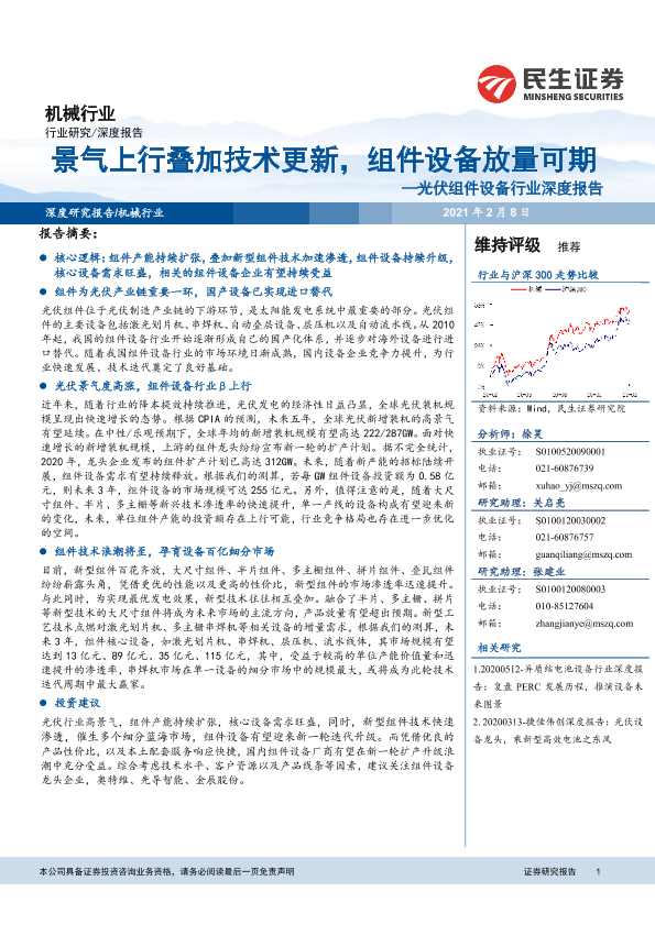 【民生证券】【20210208】景气上行叠加技术更新,组件设备放量可期—光伏组件设备行业深度报告-38页